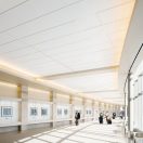 Over 80,000 square feet of Armstrong METALWORKS Torsion Spring Custom Curved Ceiling planks were used to accomplish the design. The planks measure 30" x 82" in size, and feature a custom Cream Weave surface finish. They are also perforated and backed with a fiberglass infill to provide acoustical control.