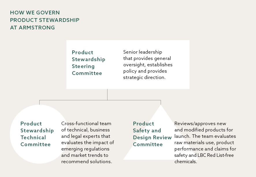 Our design and testing processes are focused on the health and safety aspects of our products, as well as optimizing sustainability starting with the design phase and carried through end-of-life. All our new products, including those manufactured by authorized third-party vendors, undergo a comprehensive Product Safety Design Review Process that covers a multiphase screening for safety attributes, including chemical content, seismic and fire performance and compliance with indoor air quality standards. We regularly review the latest regulatory guidance to monitor ongoing compliance with local and global regulations regarding safety and chemicals of concern.