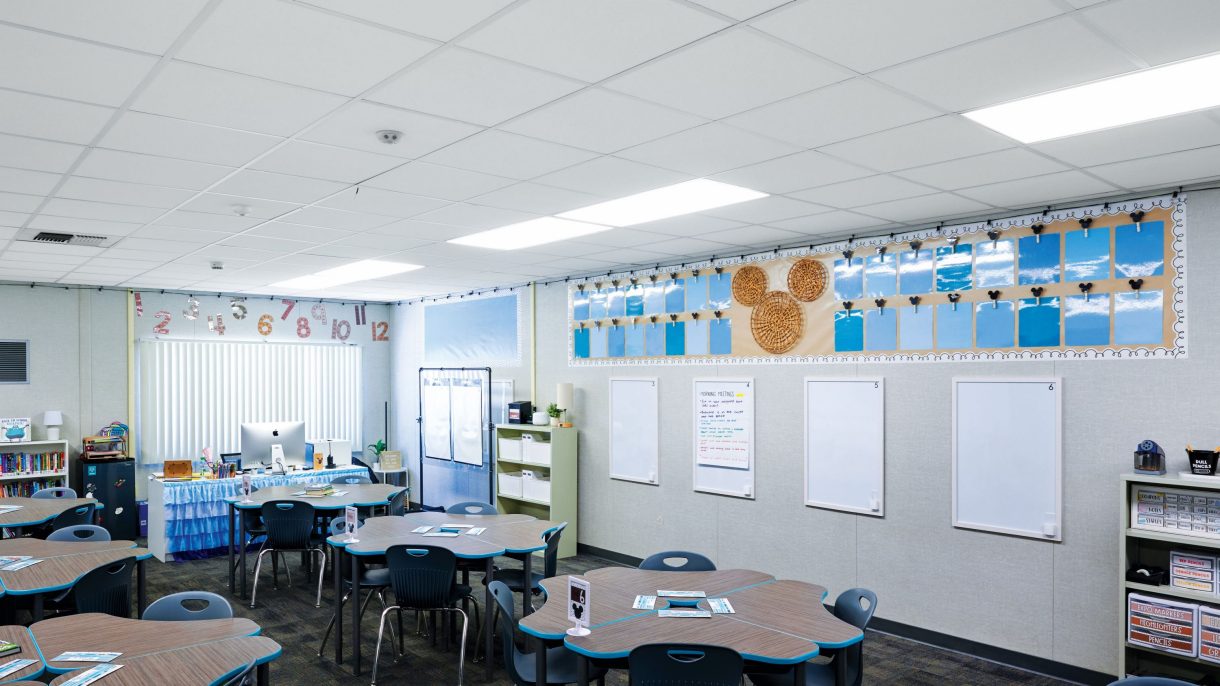 Three classrooms at Palm Springs Unified School District were retrofitted with TEMPLOK Energy Saving Ceilings. The installation was completed over a weekend with no disruption to classes and the classrooms were monitored for temperature and cooling energy use. Compared to rooms with standard ceiling panels, TEMPLOK ceilings significantly improved comfort and cooling efficiency. These results demonstrate the value of TEMPLOK ceilings as a simple, passive upgrade to acoustic ceiling tiles in environments with temperature swings, enhancing aesthetics, acoustics, and overall comfort in learning spaces.