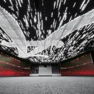 While the original concept called for the perforations in all the ceiling panels to be unique, the design team found a way to reduce the cost by commonizing the perforation patterns in the panels that were not part of the Script A logo.