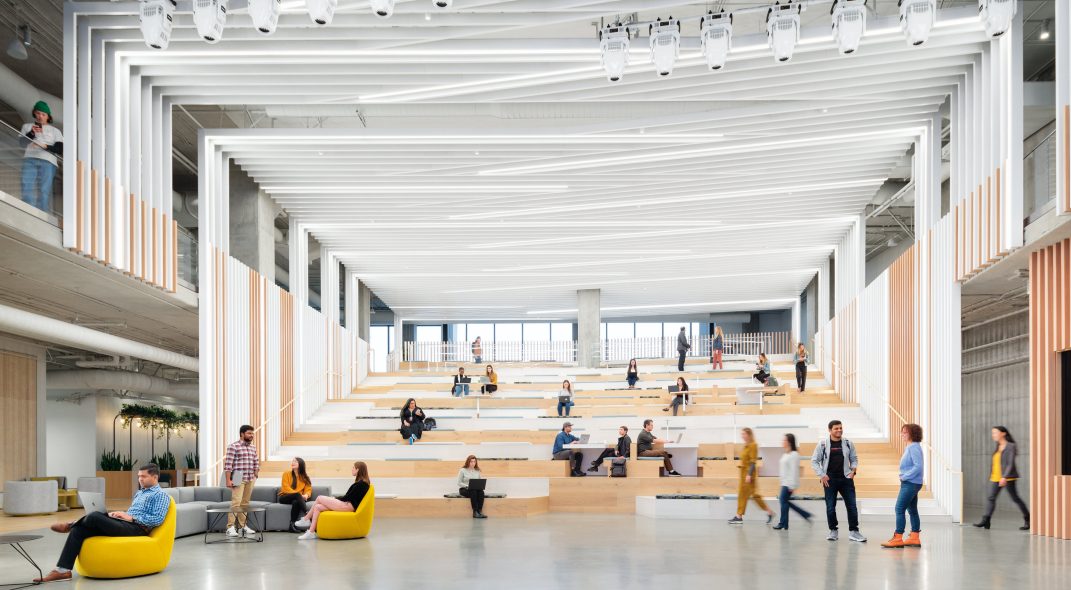 He also reports a variety of different ceiling systems were installed depending on the nature of the space. As a result, the ceilings became a major design element and provided the opportunity to create impactful spaces.