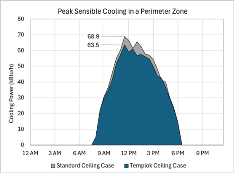 This study demonstrates how TEMPLOK ceilings can measurably improve energy performance and sustainability in Southern California perimeter building zones. In the Los Angeles model, TEMPLOK reduced annual perimeter-zone heating and cooling loads by 7-9% and peak sensible cooling load by 8%.