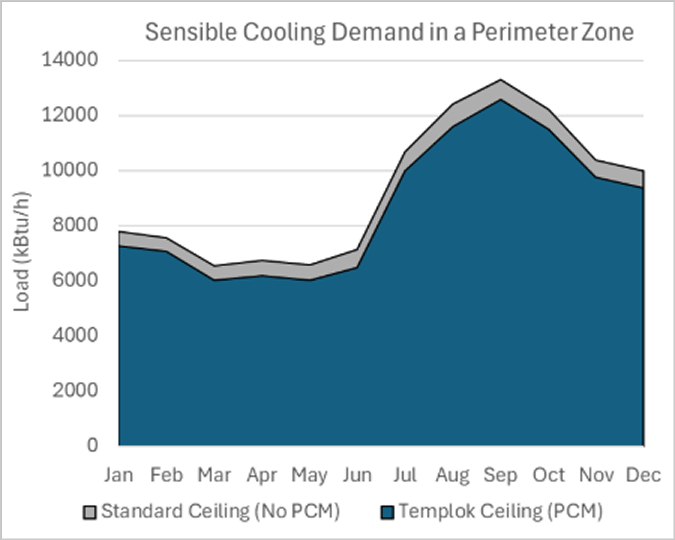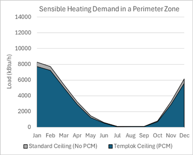 At this level of performance, the TEMPLOK ceiling upgrade pays back quickly, and sometimes immediately when tax incentives are included. Buildings with time-of-use or high demand rates benefit further, as TEMPLOK shifts thermal load away from peak periods. In non-perimeter zones, pairing TEMPLOK ceilings with night purge ventilation can further boost performance by helping the PCM fully reset.